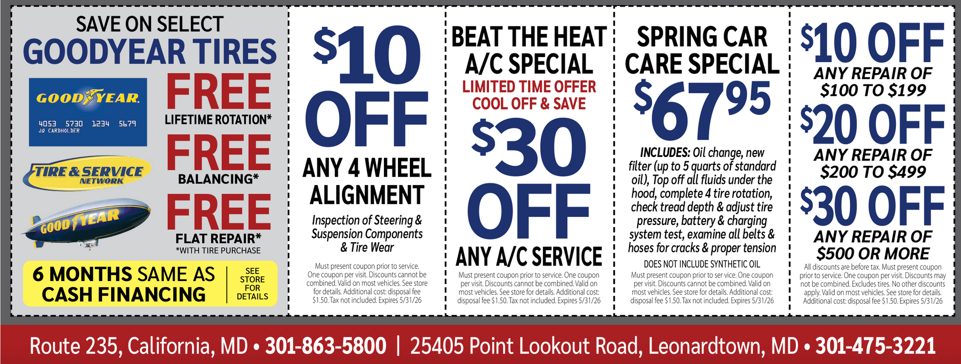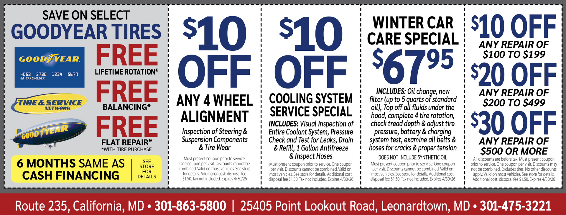 All discounts are applied before tax. Must present coupon prior to service. Limit one coupon per visit. Discounts cannot be combined. Valid on most vehicles. Additional disposal fee applies. See store for details. Expires (Changes regularly)