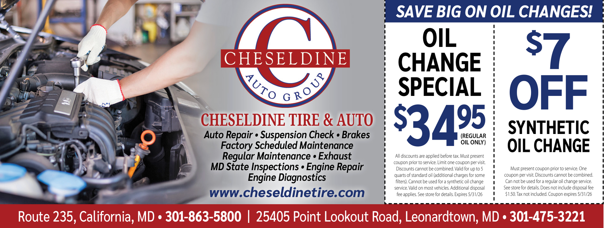 Must present coupon prior to service. One coupon per visit. Discounts cannot be combined. Can not be used for a regular oil change service. See store for details. Additional cost for disposal fee.