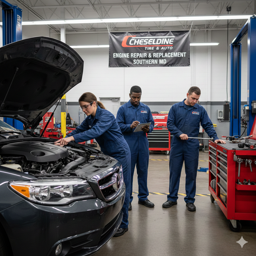 Related Keywords and Hashtags: Engine repair Southern MD, Engine replacement Southern MD, Car engine repair Calvert County, Auto repair St. Mary's County, Check engine light diagnosis, Engine knocking sound, Car performance issues, Vehicle engine service, Auto mechanic Southern MD, California MD auto repair, Leonardtown MD engine service, Cheseldine Auto. #EngineRepairSouthernMD #AutoRepairCalvertCounty #StMarysCountyCars #CheseldineAuto #EngineReplacement #CarMaintenance #SouthernMDCars #VehicleCare #CheckEngineLight #MechanicNearMe